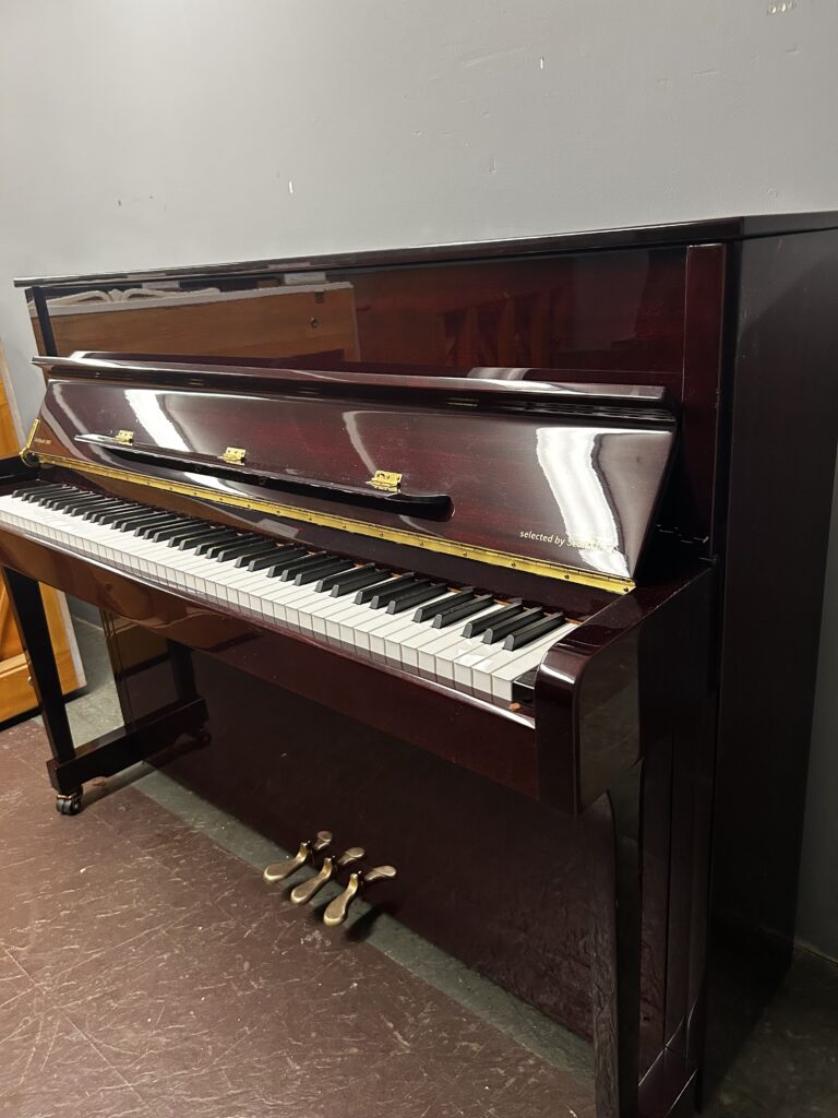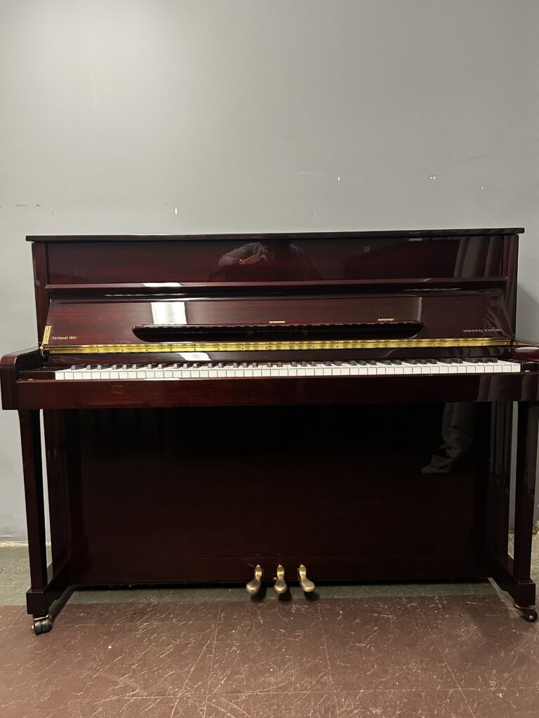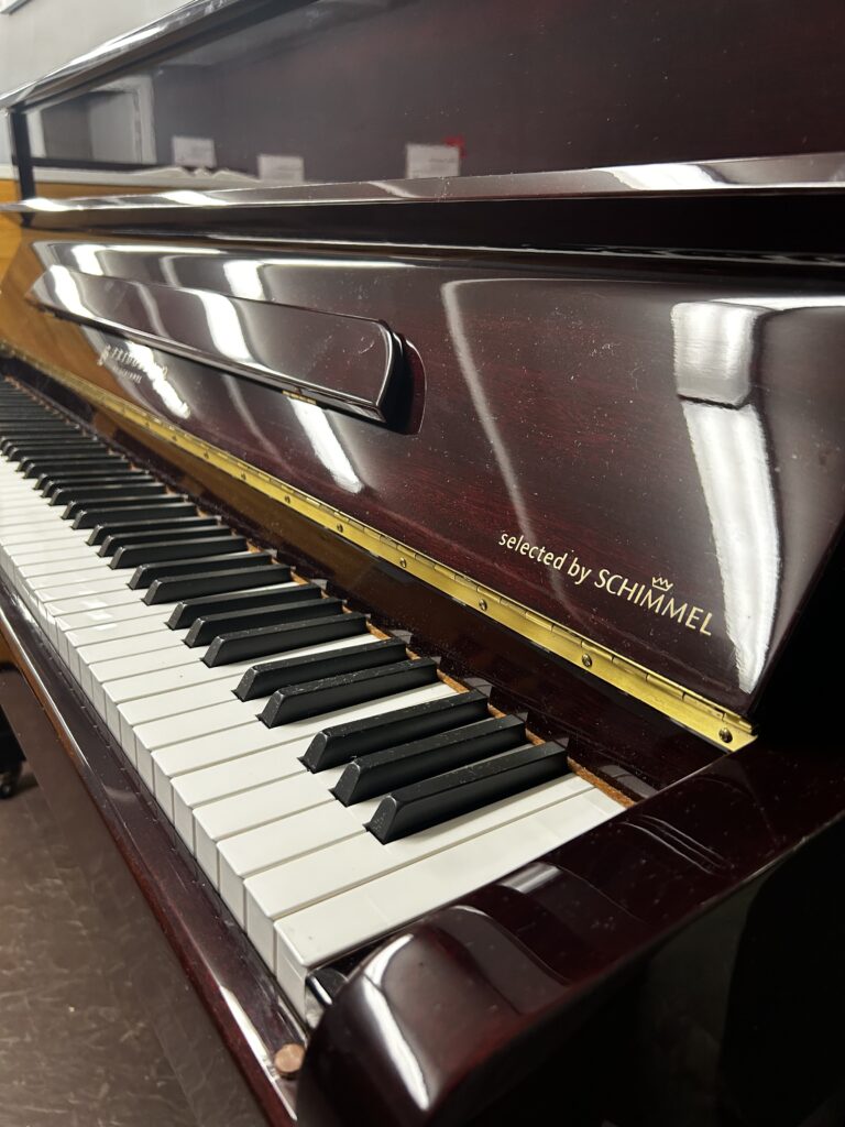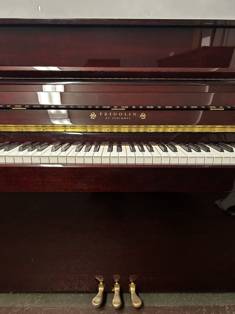 At $5,500, this 2015 Fridolin Schimmel F114T represents excellent value for a modern, well-built upright in a luxurious polished mahogany cabinet. It’s a stylish, musically capable piano that will serve its next owner faithfully for many years.