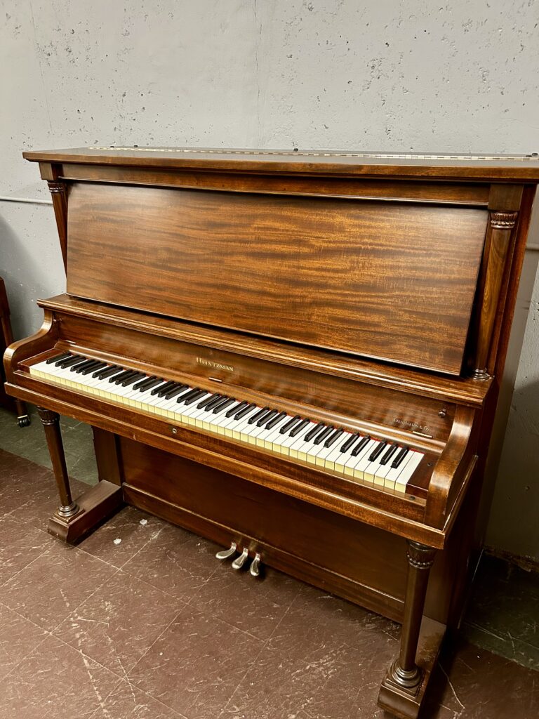 Our 1914 Heintzman Upright, Model A-Scale is a stunning example of the craftsmanship that established Heintzman as Canada’s most prestigious piano maker. Standing tall at 52 inches, this full-sized upright was built during the company’s golden era, offering both commanding presence and concert-quality tone.